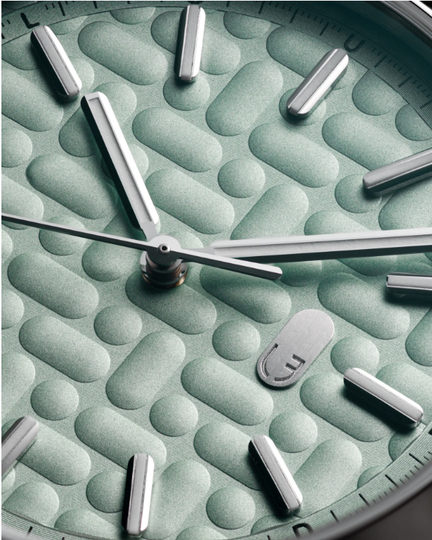 - Three different dial options are available: mint green capsule embossing, steel blue horizontal stripes, and dark blue horizontal stripes, each with its own characteristics, balancing modernity and classic charm.